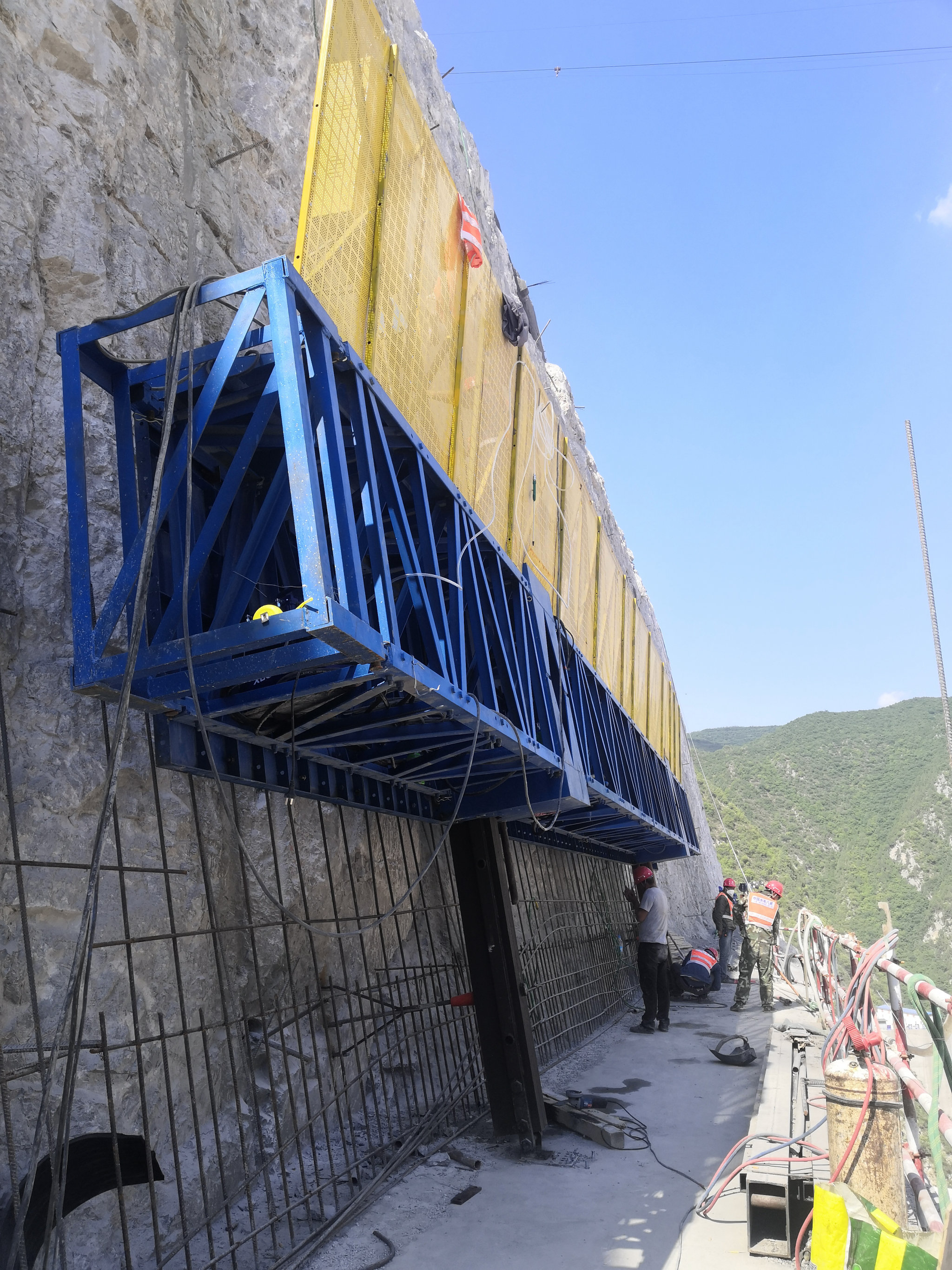 在设计层面,滑模装置各系统精妙融合。附着系统犹如 “钢铁壁虎”,特制锚筋与爬升锥紧密配合,牢牢扎根于边坡,轨道坚实稳固,为滑模搭建起安全可靠的 “跑道”;操作平台系统兼顾实用与安全,骨架坚固,铺板、护栏一应俱全,为施工人员打造出舒适且有保障的作业空间;液压提升系统动力澎湃,先进控制台搭配大功率穿心液压千斤顶,确保滑模稳步攀升;水电配套系统灵活布局,保障施工全程水电无忧。尤为值得关注的是,这是公司首次将[某前沿设计理念或技术应用,如自适应坡面调节技术]应用于滑模设计,专为东庄项目复杂地形量身定制,填补了行业同类设计在应对此类超高边坡难题上的空白。