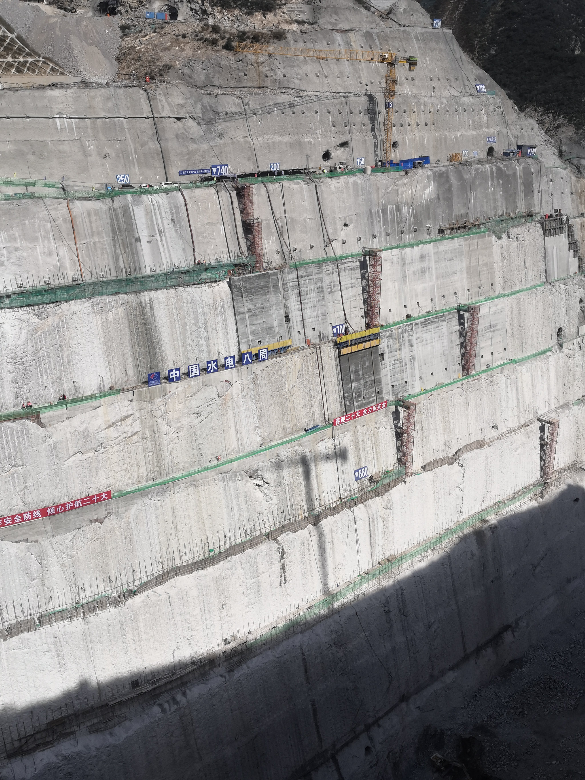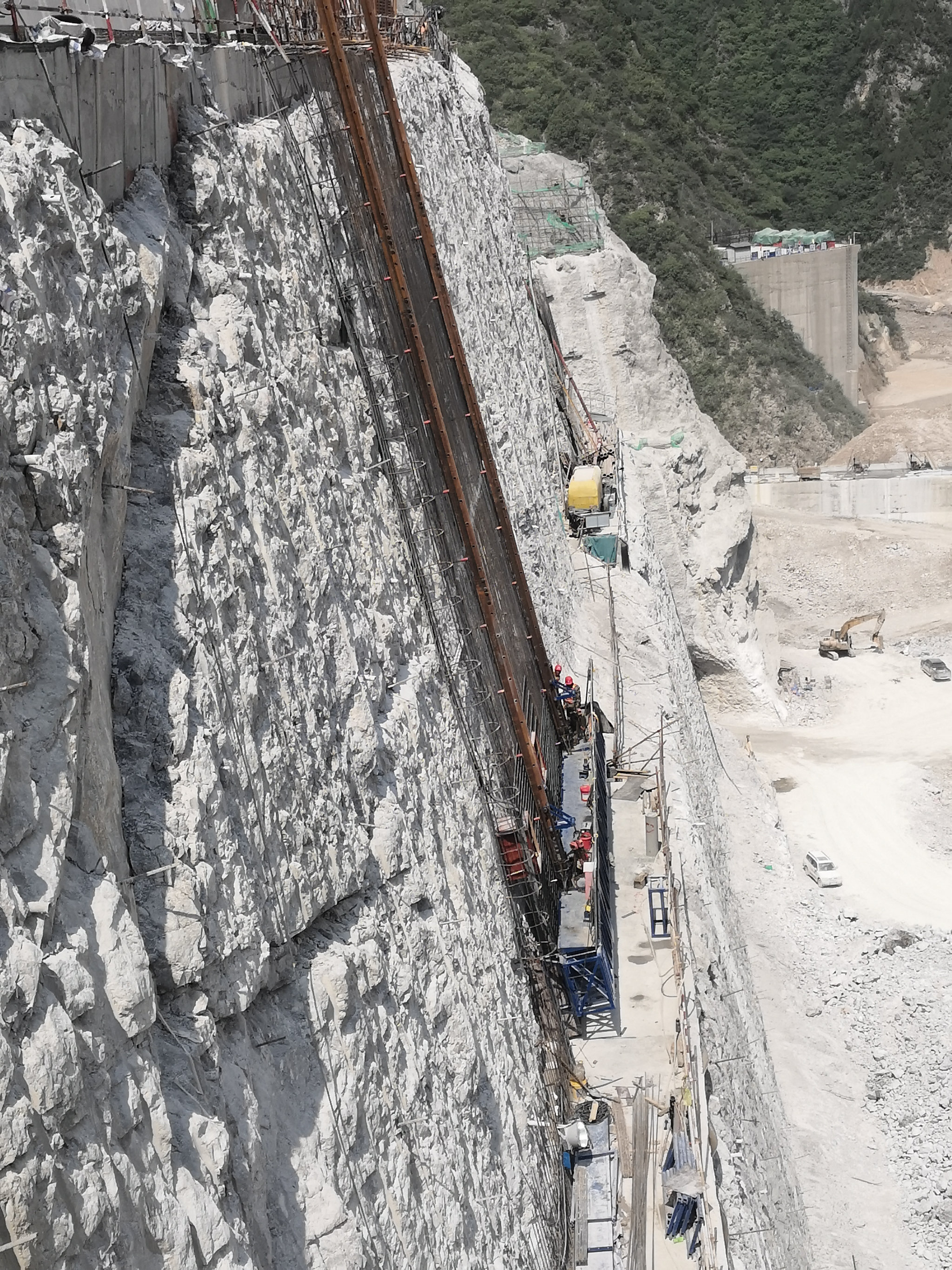 东庄项目施工现场地势极端险峻,高山峡谷纵横交错。两岸自然边坡最高处飙升至超 300 米,最大开挖边坡深度达到 240 米,平均坡度陡峭至 70°,局部区域更是近乎垂直,达到 80°,如此超高边坡作业给工程建设带来了超乎想象的挑战。传统贴坡混凝土施工模式在这片复杂地形中破绽百出:就模板周转而言,每施工一小段就要耗费大量人力去搬运、安装新模板,初步估算,整个项目若采用传统方式,模板周转次数高达26次,人工成本在总成本中的占比过高,成本直线飙升;起重机械面对如此陡峭且大面积的坡面,有效覆盖范围不足 60%,施工盲区随处可见,高空坠物、坡面坍塌等安全隐患频发,安全风险急剧攀升;再加上现场施工条件恶劣,山间小道崎岖狭窄,施工材料运输车辆通行困难,运输效率较常规项目降低约[X]%,工程进度被拖慢,传统施工方式陷入僵局。